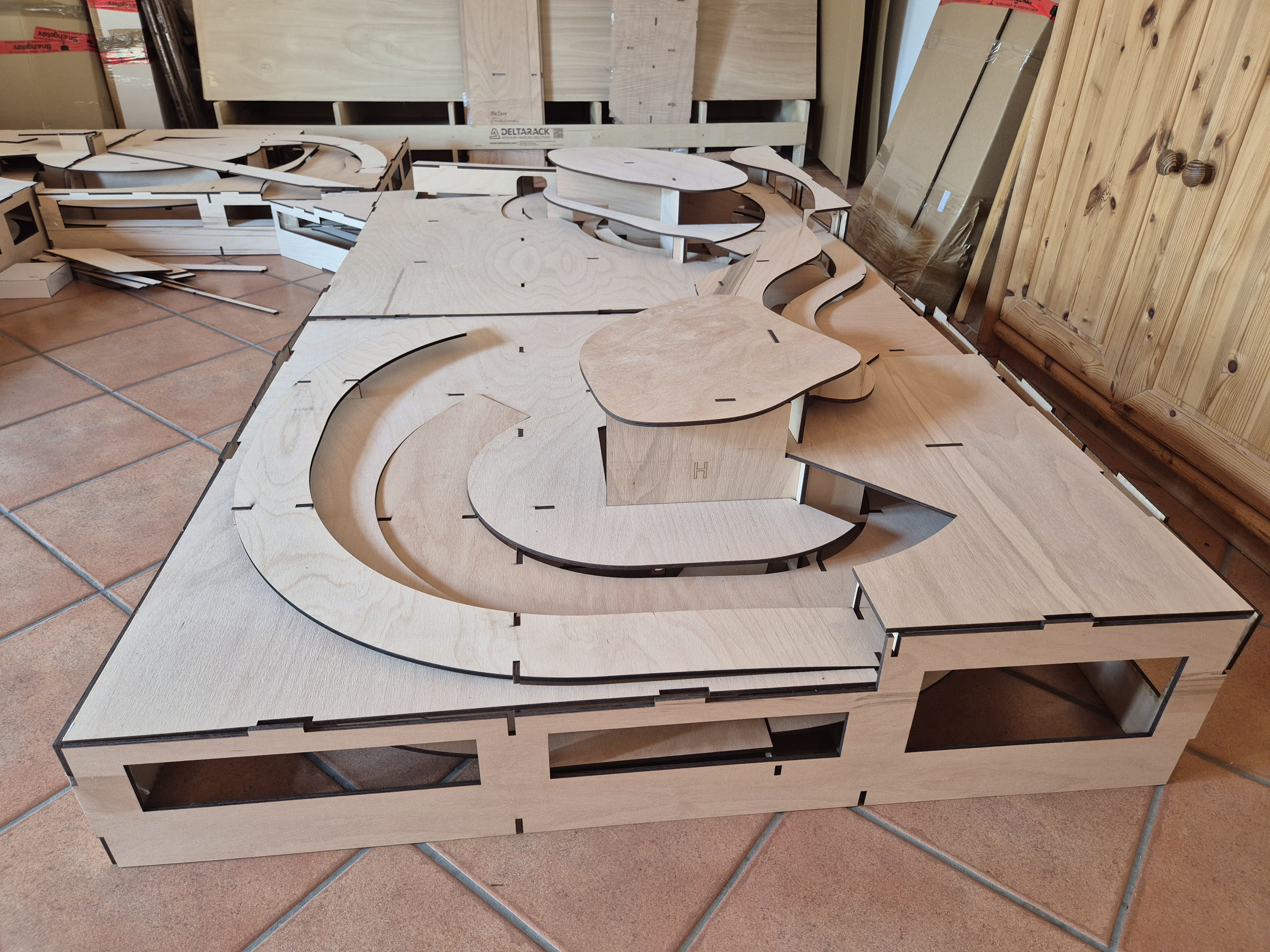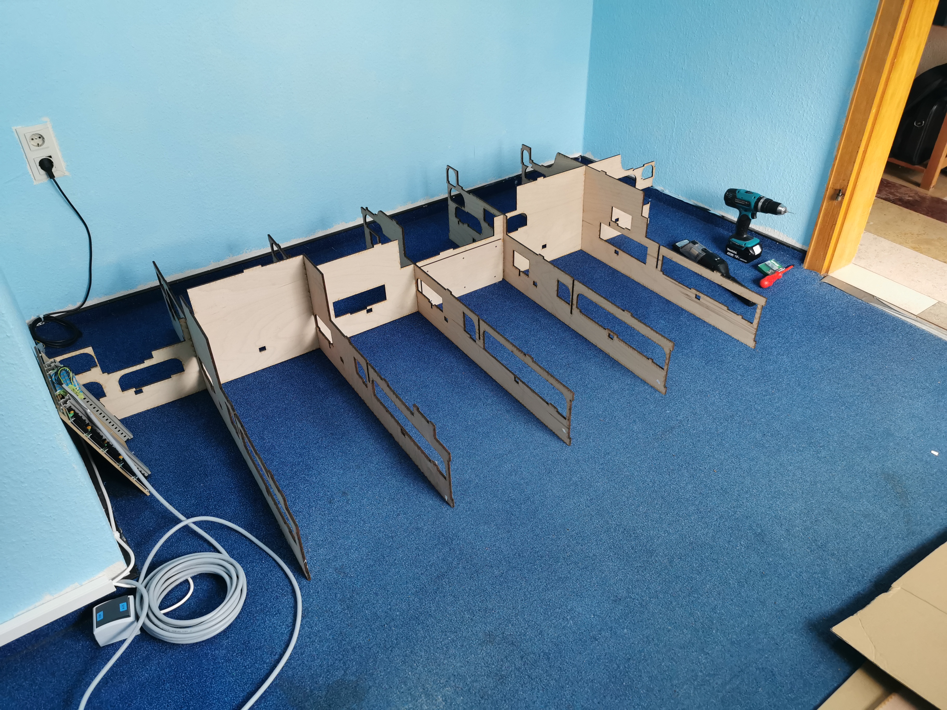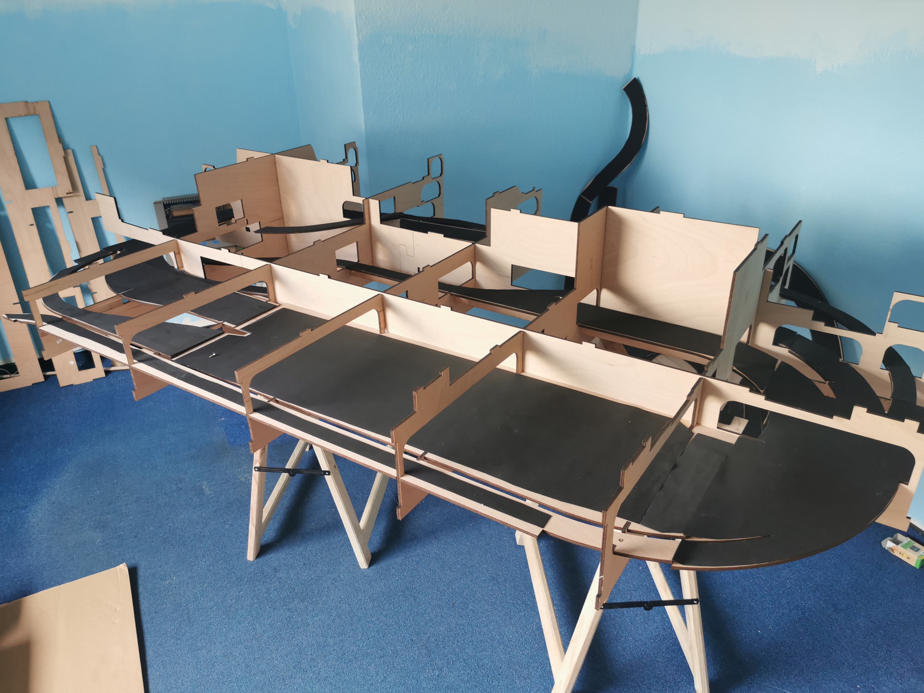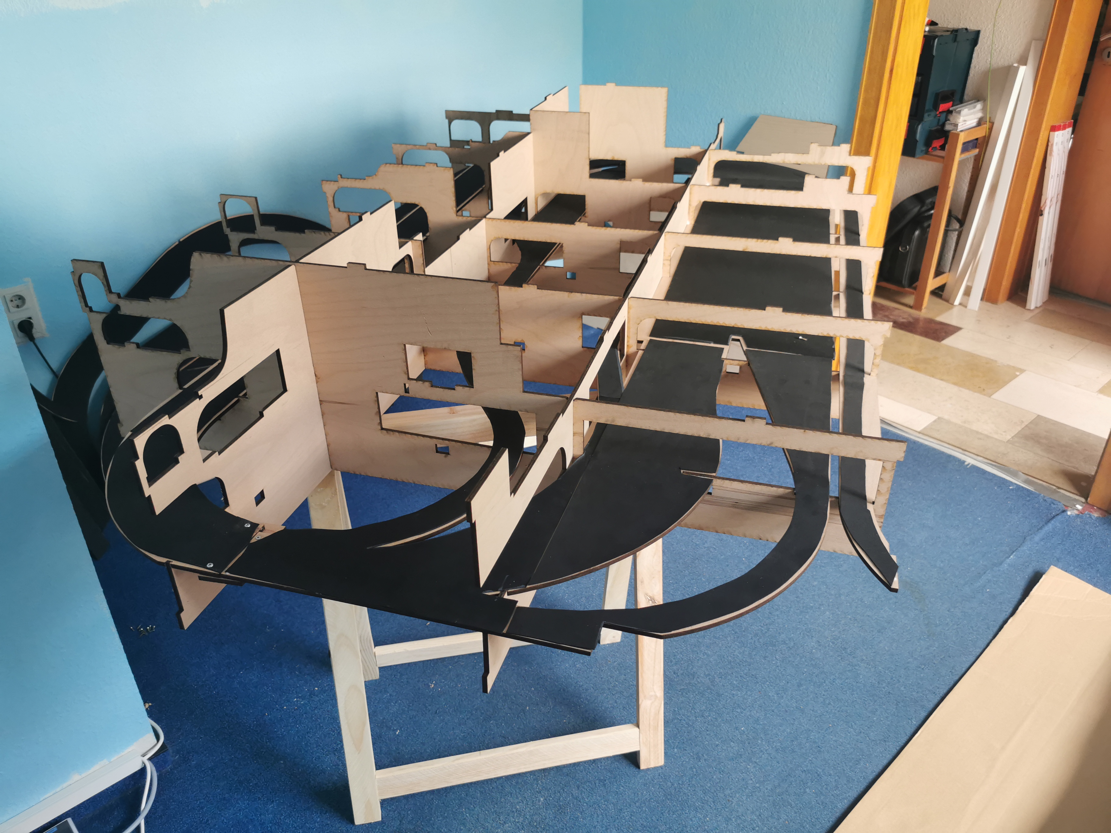 Zunächst mal Teil 4 probeweise auf dem Fussboden zusammenstecken, nach ca 1 Stunde ist alles fertig.