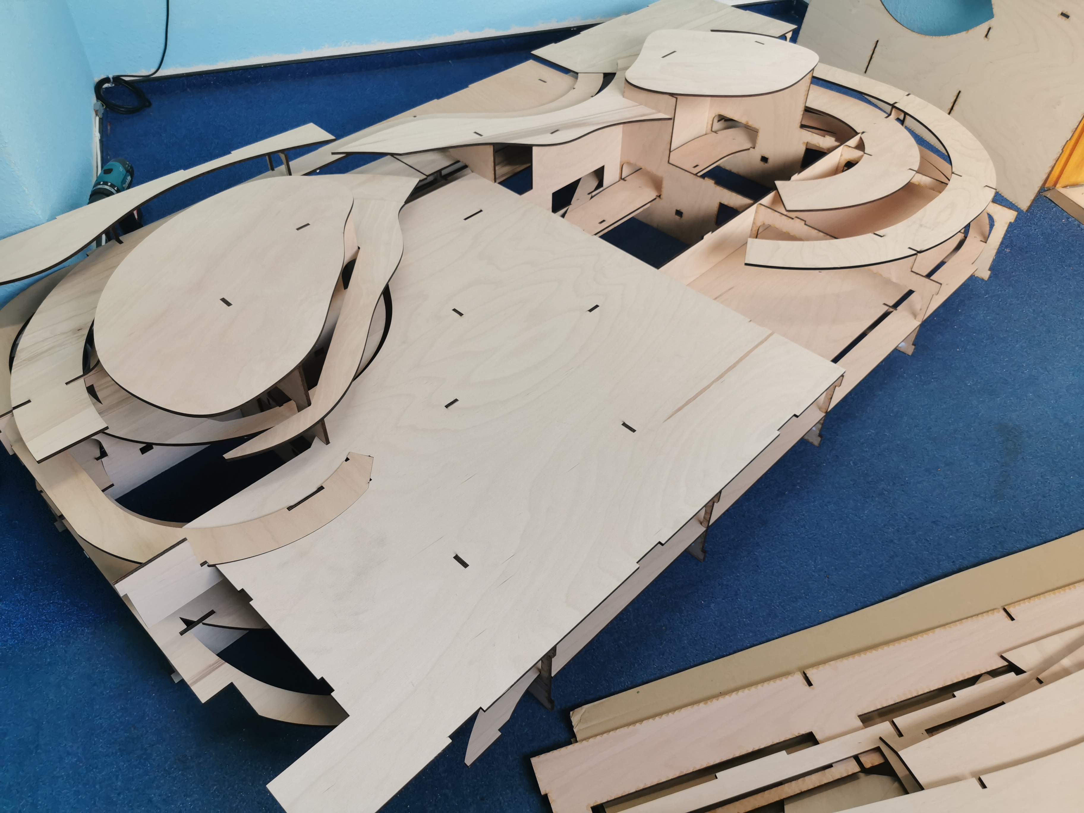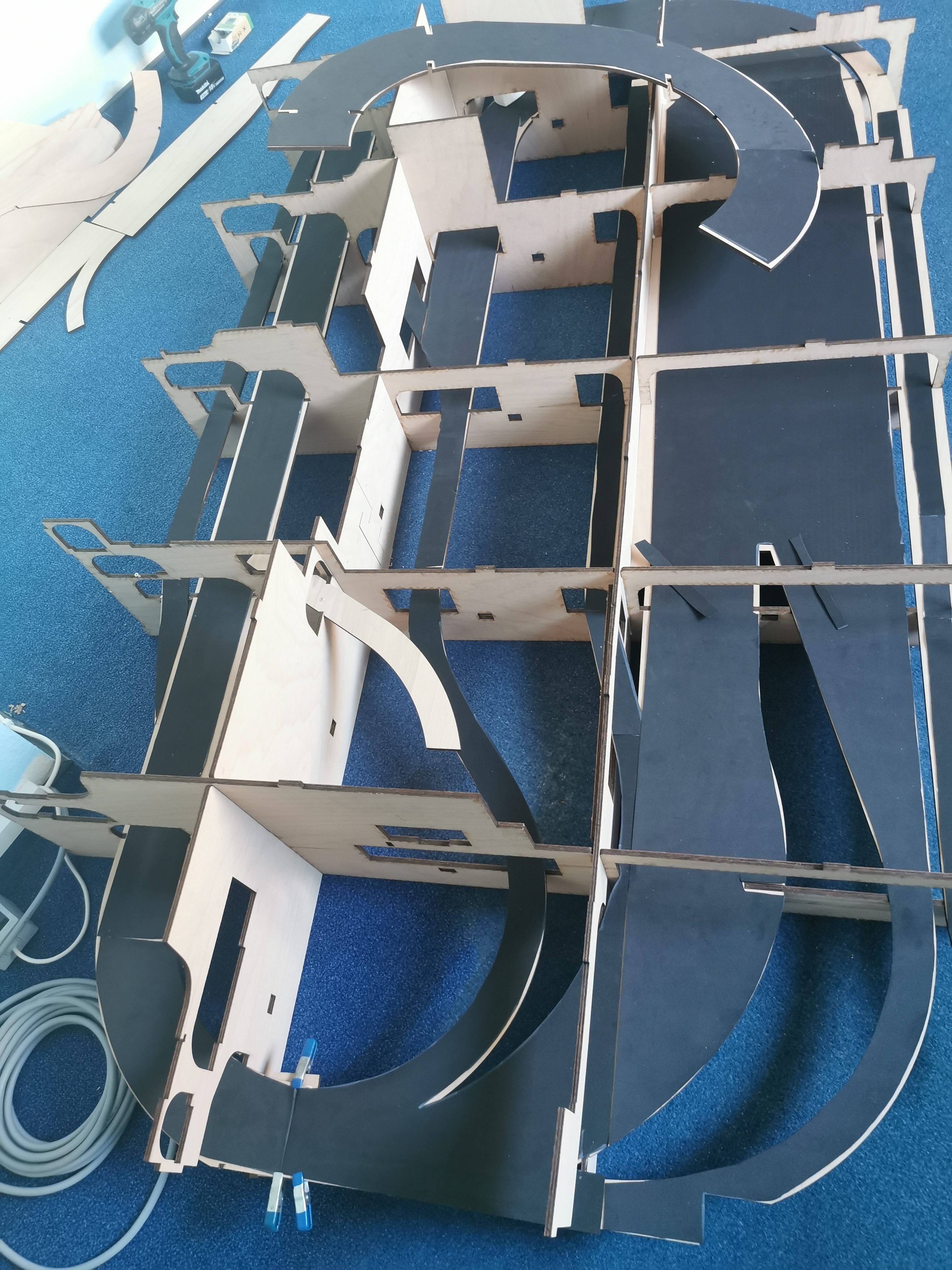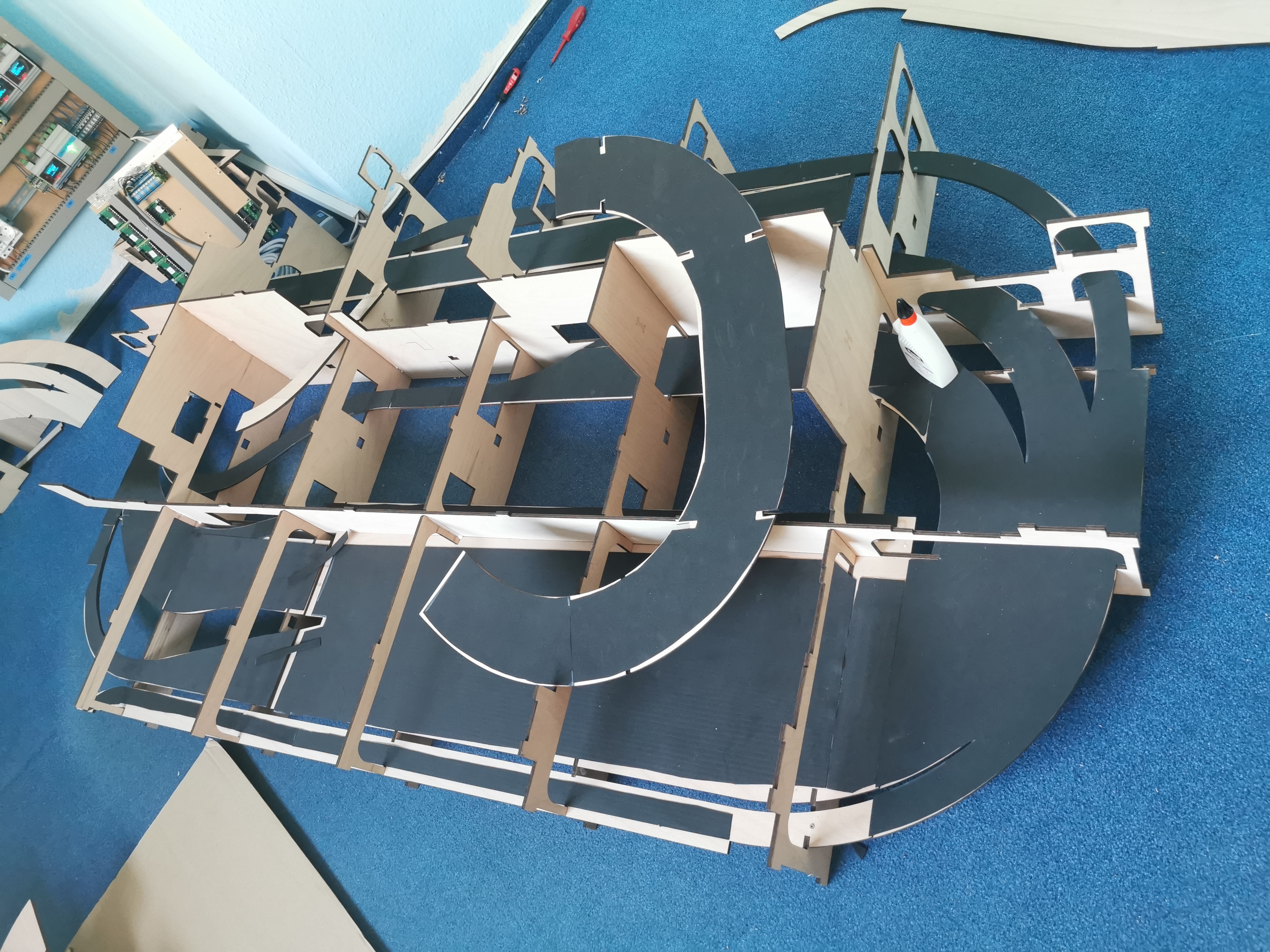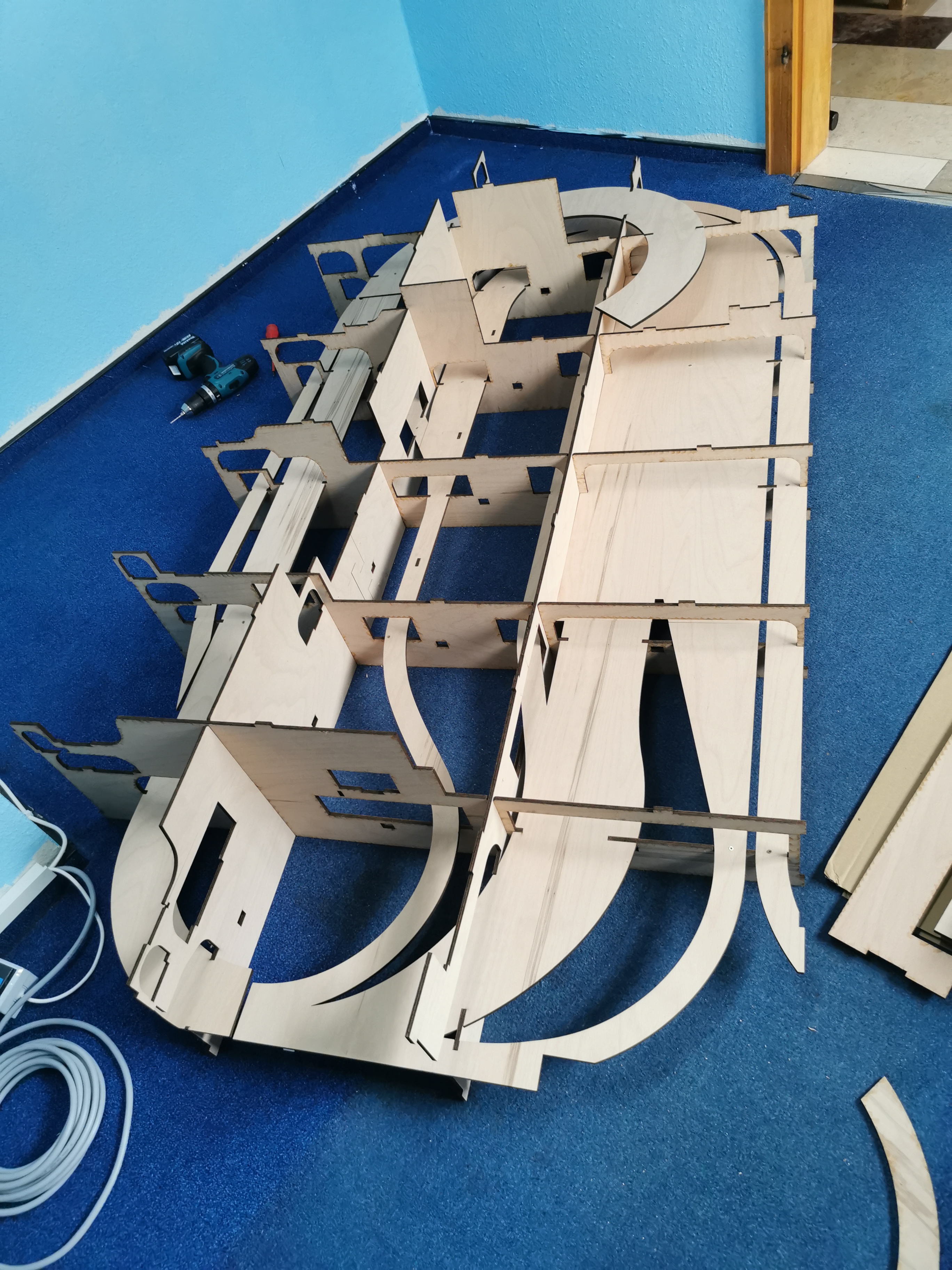 Zunächst mal Teil 4 probeweise auf dem Fussboden zusammenstecken, nach ca 1 Stunde ist alles fertig.